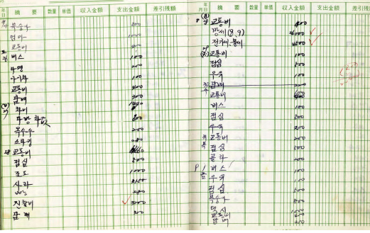 가계부에서는 정확하게 수량에 대한 정보가 없기 때문에 짐작으로 그 가격을 유추할 수 있습니다. 백인자님의 가계부를 살펴보면서 그 분의 삶의 모습을 짐작할 수 있었습니다.
