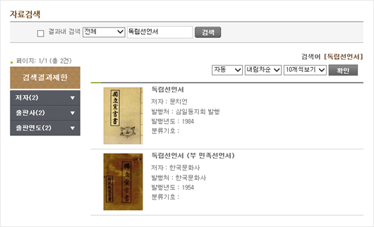 [그림 3] 경기도메모리 ‘독립선언서’ 검색결과